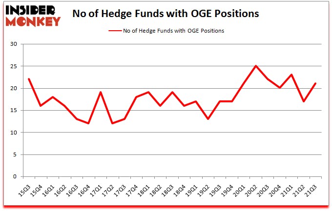 OGE Energy Corp. (NYSE:OGE) has experienced an increase in support from the world’s most elite money managers lately. OGE Energy Corp. (NYSE:OGE) was in 21 hedge funds’ portfolios at the end of the third quarter of 2021. The all time high for this statistic is 25. Our calculations also showed that OGE isn’t among the 30 most popular stocks among hedge funds (click for Q2 rankings).