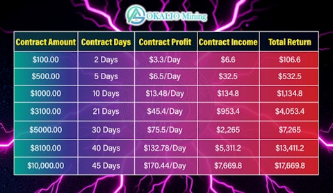 Okalio Mining’s platform ensures that every user enjoys substantial returns. Users receive daily or monthly payouts based on their selected hashrate contracts, and the platform utilizes a precise algorithm to ensure transparency and fairness. Through multiple optimizations to maximize mining efficiency, Okalio Mining provides users with a fixed daily income, effectively mitigating the risks associated with market fluctuations while also providing them with long-term, stable returns.