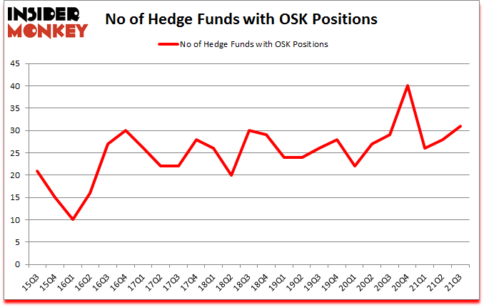 Heading into the fourth quarter of 2021, a total of 31 of the hedge funds tracked by Insider Monkey held long positions in this stock, a change of 11% from one quarter earlier. Below, you can check out the change in hedge fund sentiment towards OSK over the last 25 quarters. With the smart money’s sentiment swirling, there exists an “upper tier” of key hedge fund managers who were upping their stakes meaningfully (or already accumulated large positions).