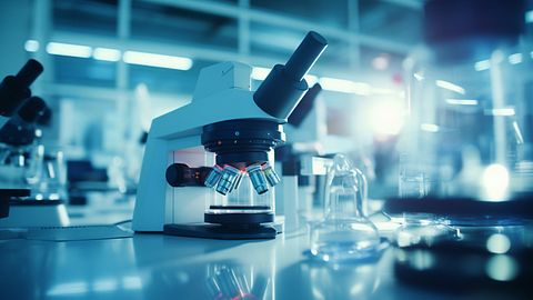A scientist standing in a laboratory, deeply focused on discovering new biopharmaceuticals.