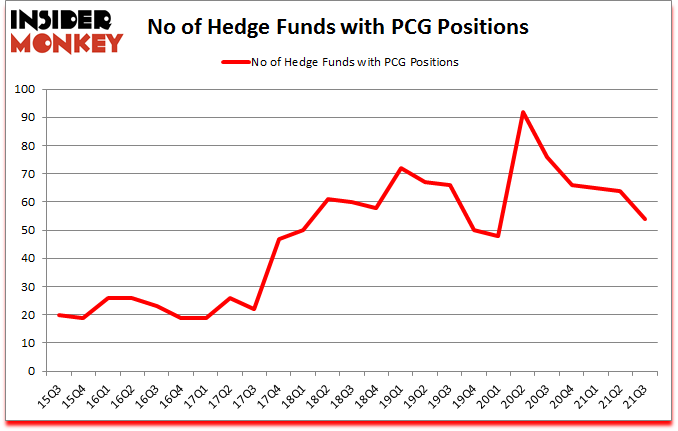 Is PG&E Corporation (NYSE:PCG) ready to rally soon? Money managers were cutting their exposure. The number of long hedge fund bets dropped by 10 in recent months. PG&E Corporation (NYSE:PCG) was in 54 hedge funds’ portfolios at the end of the third quarter of 2021. The all time high for this statistic is 92. Our calculations also showed that PCG isn’t among the 30 most popular stocks among hedge funds (click for Q3 rankings). There were 64 hedge funds in our database with PCG holdings at the end of June.