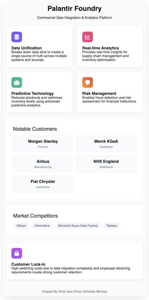 Palantir Foundry: This platform is something that you can get to know the specifics of more deeply than the Gotham one. Foundry is mostly for commercial customers.