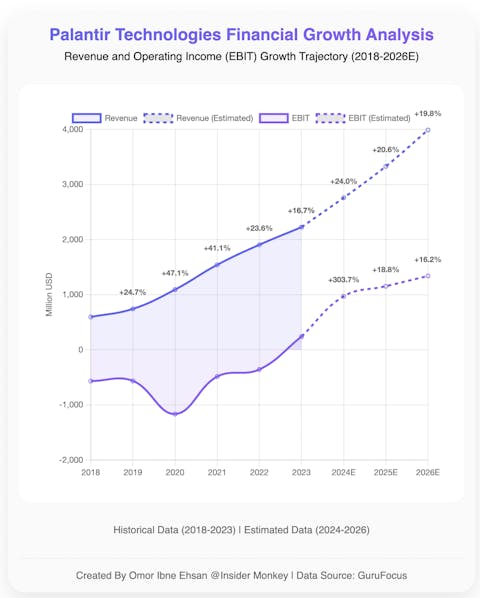 Palantir stock is up 649% from its May 2023 trough till now because not only did it grow fast and surprise the market, it also successfully transitioned from being a cash-bleeding growth company to having a net margin of nearly 20%—still growing its top and bottom line—with no end in sight to how much bigger its top line could get. However, estimates do see the margin growth falling flat.