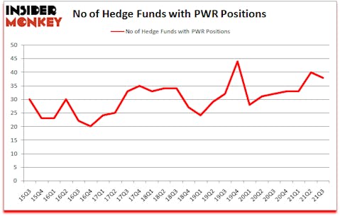 Quanta Services Inc (NYSE:PWR) was in 38 hedge funds’ portfolios at the end of the third quarter of 2021. The all time high for this statistic is 44. PWR investors should pay attention to a decrease in activity from the world’s largest hedge funds lately. There were 40 hedge funds in our database with PWR positions at the end of the second quarter. Our calculations also showed that PWR isn’t among the 30 most popular stocks among hedge funds (click for Q3 rankings).
