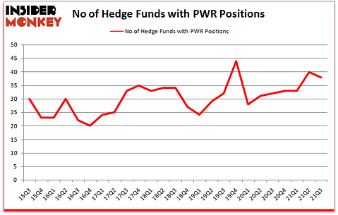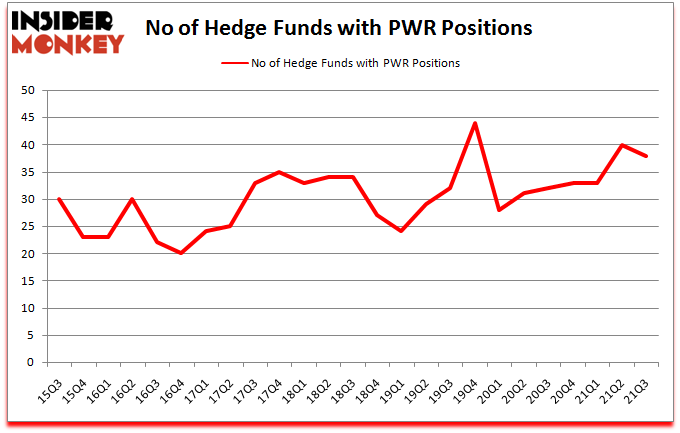 Quanta Services Inc (NYSE:PWR) was in 38 hedge funds’ portfolios at the end of the third quarter of 2021. The all time high for this statistic is 44. PWR investors should pay attention to a decrease in activity from the world’s largest hedge funds lately. There were 40 hedge funds in our database with PWR positions at the end of the second quarter. Our calculations also showed that PWR isn’t among the 30 most popular stocks among hedge funds (click for Q3 rankings).