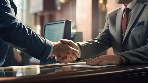 A close-up view of a customer receiving assistance from a bank teller.