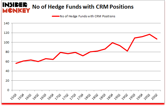 salesforce.com, inc. (NYSE:CRM) has experienced a decrease in support from the world’s most elite money managers of late. salesforce.com, inc. (NYSE:CRM) was in 107 hedge funds’ portfolios at the end of the second quarter of 2020. The all time high for this statistics is 117 which was achieved at the end of March as hedge funds took advantage of the declines in CRM’s stock price during the March market crash. Our calculations also showed that CRM still managed to rank #17 among the 30 most popular stocks among hedge funds (click for Q2 rankings and see the video for a quick look at the top 5 stocks).