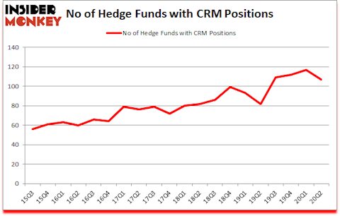 salesforce.com, inc. (NYSE:CRM) has experienced a decrease in support from the world’s most elite money managers of late. salesforce.com, inc. (NYSE:CRM) was in 107 hedge funds’ portfolios at the end of the second quarter of 2020. The all time high for this statistics is 117 which was achieved at the end of March as hedge funds took advantage of the declines in CRM’s stock price during the March market crash. Our calculations also showed that CRM still managed to rank #17 among the 30 most popular stocks among hedge funds (click for Q2 rankings and see the video for a quick look at the top 5 stocks).