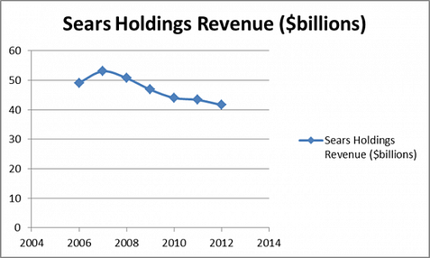 Sears Holdings Corporation (NASDAQ:SHLD) is one of the largest retailers in the U.S. with over 2,000 stores under its Sears and Kmart brands, and another 500 stores in Canada. Sears has been a stock that has disappointed me for some time now, as revenues keep falling (see below) and the company has not quite figured out a way to turn things around yet. With the company set to report year-end earnings Feb 28, is a turnaround finally on the horizon, or are more declines coming soon?
