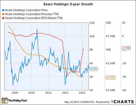 Sears Holdings Corporation (NASDAQ:SHLD) is often mentioned in the same breath as its troubled retail peer, J.C. Penney Company, Inc. (NYSE:JCP). The two companies indeed share a lot of similar characteristics – leadership changes, an unclear path for the future, consistently declining same-store sales and dwindling cash flow.