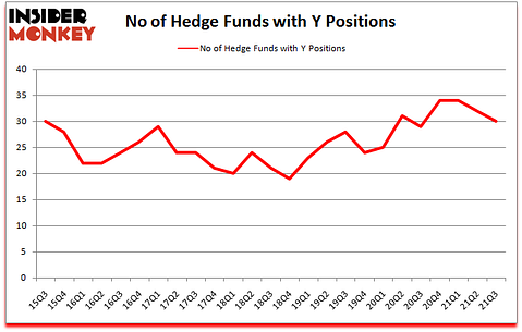 Alleghany Corporation (NYSE:Y) has seen a decrease in enthusiasm from smart money in recent months. Alleghany Corporation (NYSE:Y) was in 30 hedge funds’ portfolios at the end of September. The all time high for this statistic is 34. There were 32 hedge funds in our database with Y holdings at the end of June. Our calculations also showed that Y isn’t among the 30 most popular stocks among hedge funds (click for Q3 rankings).