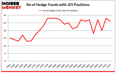 Heading into the fourth quarter of 2021, a total of 26 of the hedge funds tracked by Insider Monkey were long this stock, a change of -7% from the previous quarter. The graph below displays the number of hedge funds with bullish position in ATI over the last 25 quarters. With hedgies’ capital changing hands, there exists a select group of notable hedge fund managers who were adding to their holdings substantially (or already accumulated large positions).