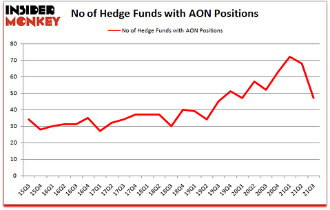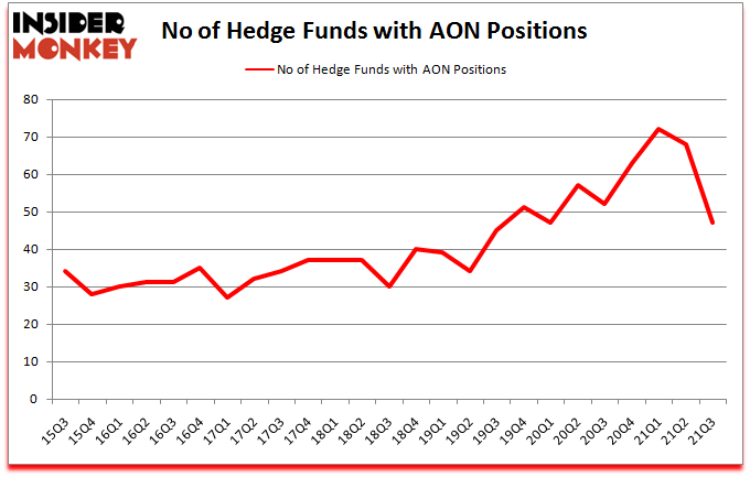 Aon plc (NYSE:AON) has experienced a decrease in hedge fund sentiment in recent months. Aon plc (NYSE:AON) was in 47 hedge funds’ portfolios at the end of the third quarter of 2021. The all time high for this statistic is 72. Our calculations also showed that AON isn’t among the 30 most popular stocks among hedge funds (click for Q3 rankings).
