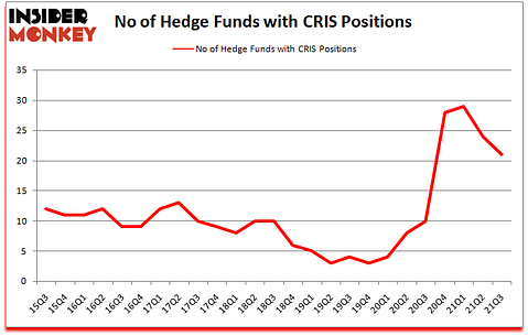 At Q3’s end, a total of 21 of the hedge funds tracked by Insider Monkey were bullish on this stock, a change of -13% from the previous quarter. The graph below displays the number of hedge funds with bullish position in CRIS over the last 25 quarters. So, let’s find out which hedge funds were among the top holders of the stock and which hedge funds were making big moves.