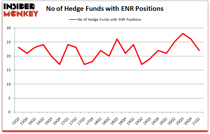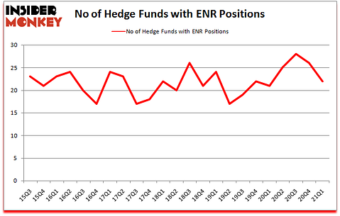 At the end of March, a total of 22 of the hedge funds tracked by Insider Monkey were bullish on this stock, a change of -15% from one quarter earlier. Below, you can check out the change in hedge fund sentiment towards ENR over the last 23 quarters. With hedgies’ positions undergoing their usual ebb and flow, there exists a few notable hedge fund managers who were boosting their stakes considerably (or already accumulated large positions).