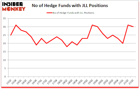 At the end of September, a total of 30 of the hedge funds tracked by Insider Monkey held long positions in this stock, a change of -3% from one quarter earlier. The graph below displays the number of hedge funds with bullish position in JLL over the last 25 quarters. With the smart money’s capital changing hands, there exists a select group of key hedge fund managers who were increasing their stakes substantially (or already accumulated large positions).