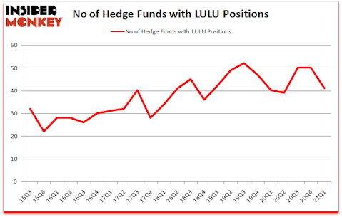 Lululemon Athletica inc. (NASDAQ:LULU) was in 41 hedge funds’ portfolios at the end of the first quarter of 2021. The all time high for this statistic is 52. LULU has seen a decrease in enthusiasm from smart money recently. There were 50 hedge funds in our database with LULU positions at the end of the fourth quarter. Our calculations also showed that LULU isn’t among the 30 most popular stocks among hedge funds (click for Q1 rankings).