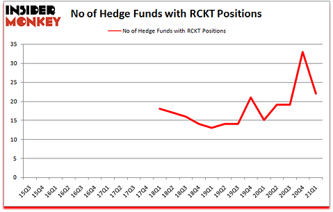 At the end of the first quarter, a total of 22 of the hedge funds tracked by Insider Monkey were bullish on this stock, a change of -33% from the previous quarter. The graph below displays the number of hedge funds with bullish position in RCKT over the last 23 quarters. So, let’s find out which hedge funds were among the top holders of the stock and which hedge funds were making big moves.