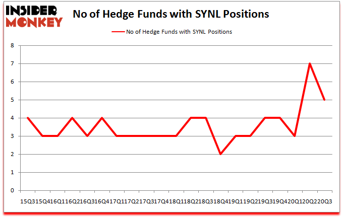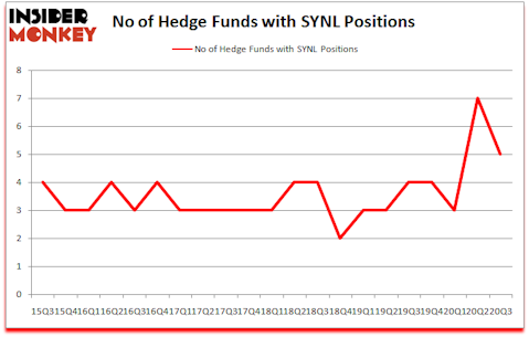 At the end of September, a total of 5 of the hedge funds tracked by Insider Monkey held long positions in this stock, a change of -29% from one quarter earlier. Below, you can check out the change in hedge fund sentiment towards SYNL over the last 21 quarters. So, let’s check out which hedge funds were among the top holders of the stock and which hedge funds were making big moves.