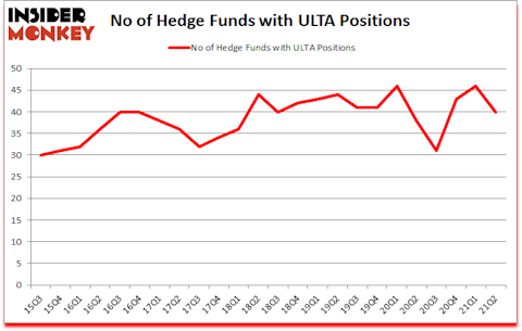 Ulta Beauty, Inc. (NASDAQ:ULTA) has experienced a decrease in activity from the world’s largest hedge funds lately. Ulta Beauty, Inc. (NASDAQ:ULTA) was in 40 hedge funds’ portfolios at the end of June. The all time high for this statistic is 46. There were 46 hedge funds in our database with ULTA holdings at the end of March. Our calculations also showed that ULTA isn’t among the 30 most popular stocks among hedge funds (click for Q2 rankings).