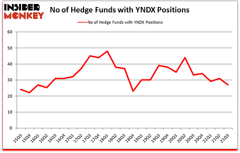 Yandex NV (NASDAQ:YNDX) investors should pay attention to a decrease in activity from the world’s largest hedge funds recently. Yandex NV (NASDAQ:YNDX) was in 27 hedge funds’ portfolios at the end of September. The all time high for this statistic is 48. There were 31 hedge funds in our database with YNDX holdings at the end of June. Our calculations also showed that YNDX isn’t among the 30 most popular stocks among hedge funds (click for Q3 rankings).