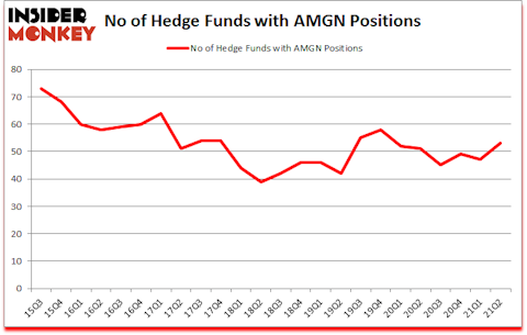 Amgen, Inc. (NASDAQ:AMGN) shareholders have witnessed an increase in hedge fund sentiment recently. Amgen, Inc. (NASDAQ:AMGN) was in 53 hedge funds’ portfolios at the end of the second quarter of 2021. The all time high for this statistic is 73. There were 47 hedge funds in our database with AMGN positions at the end of the first quarter. Our calculations also showed that AMGN isn’t among the 30 most popular stocks among hedge funds (click for Q2 rankings).
