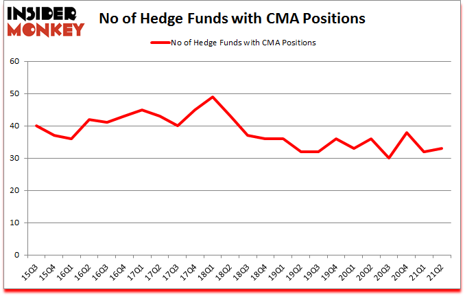 At second quarter’s end, a total of 33 of the hedge funds tracked by Insider Monkey were long this stock, a change of 3% from one quarter earlier. Below, you can check out the change in hedge fund sentiment towards CMA over the last 24 quarters. With hedge funds’ capital changing hands, there exists a few key hedge fund managers who were adding to their holdings significantly (or already accumulated large positions).