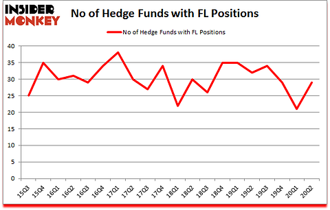 At the end of June, a total of 29 of the hedge funds tracked by Insider Monkey held long positions in this stock, a change of 38% from the first quarter of 2020. By comparison, 32 hedge funds held shares or bullish call options in FL a year ago. So, let’s check out which hedge funds were among the top holders of the stock and which hedge funds were making big moves.