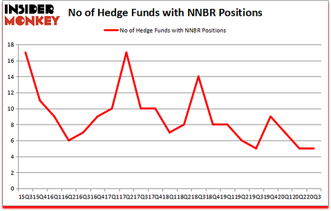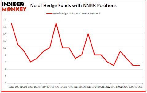 At the end of September, a total of 5 of the hedge funds tracked by Insider Monkey held long positions in this stock, a change of 0% from the second quarter of 2020. The graph below displays the number of hedge funds with bullish position in NNBR over the last 21 quarters. So, let’s review which hedge funds were among the top holders of the stock and which hedge funds were making big moves.