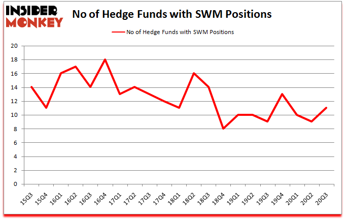 At third quarter’s end, a total of 11 of the hedge funds tracked by Insider Monkey held long positions in this stock, a change of 22% from the second quarter of 2020. Below, you can check out the change in hedge fund sentiment towards SWM over the last 21 quarters. So, let’s check out which hedge funds were among the top holders of the stock and which hedge funds were making big moves.