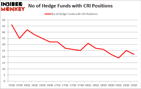Heading into the fourth quarter of 2019, a total of 22 of the hedge funds tracked by Insider Monkey were long this stock, a change of -12% from the previous quarter. The graph below displays the number of hedge funds with bullish position in CRI over the last 17 quarters. With the smart money’s sentiment swirling, there exists a select group of notable hedge fund managers who were adding to their holdings significantly (or already accumulated large positions).