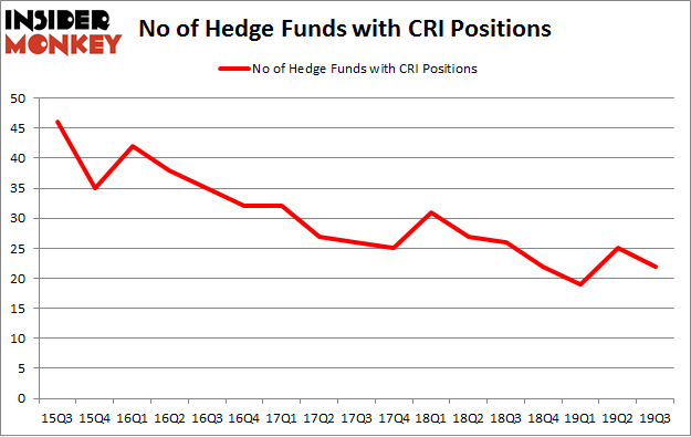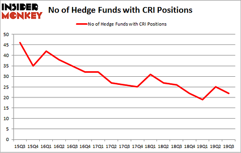 Heading into the fourth quarter of 2019, a total of 22 of the hedge funds tracked by Insider Monkey were long this stock, a change of -12% from the previous quarter. The graph below displays the number of hedge funds with bullish position in CRI over the last 17 quarters. With the smart money’s sentiment swirling, there exists a select group of notable hedge fund managers who were adding to their holdings significantly (or already accumulated large positions).