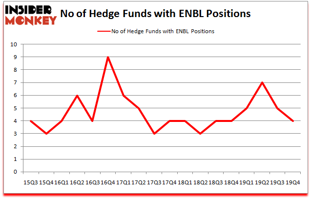 At Q4’s end, a total of 4 of the hedge funds tracked by Insider Monkey were long this stock, a change of -20% from one quarter earlier. By comparison, 4 hedge funds held shares or bullish call options in ENBL a year ago. With hedgies’ sentiment swirling, there exists an “upper tier” of notable hedge fund managers who were upping their holdings significantly (or already accumulated large positions).