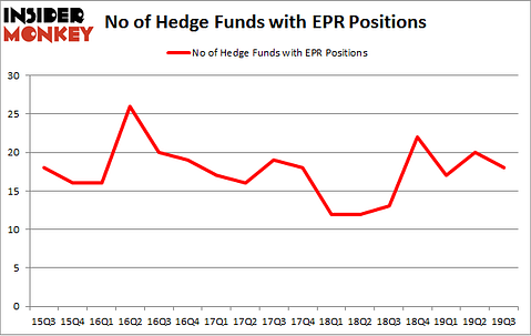 Is EPR Properties (NYSE:EPR) the right investment to pursue these days? Money managers are taking a bearish view. The number of long hedge fund bets were trimmed by 2 lately. Our calculations also showed that EPR isn’t among the 30 most popular stocks among hedge funds (click for Q3 rankings and see the video below for Q2 rankings). EPR was in 18 hedge funds’ portfolios at the end of September. There were 20 hedge funds in our database with EPR holdings at the end of the previous quarter.
