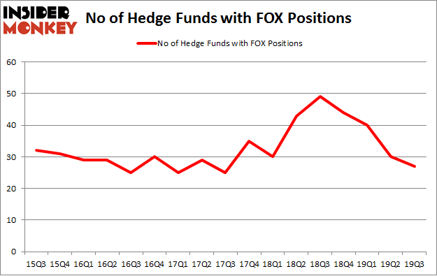 Fox Corporation (NASDAQ:FOX) shareholders have witnessed a decrease in hedge fund sentiment in recent months. FOX was in 27 hedge funds’ portfolios at the end of September. There were 30 hedge funds in our database with FOX holdings at the end of the previous quarter. Our calculations also showed that FOX isn’t among the 30 most popular stocks among hedge funds (click for Q3 rankings and see the video below for Q2 rankings).