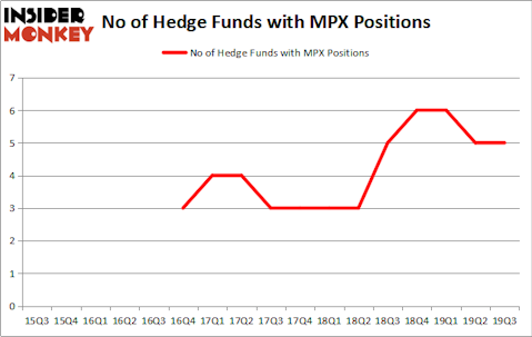 Heading into the fourth quarter of 2019, a total of 5 of the hedge funds tracked by Insider Monkey were long this stock, a change of 0% from the second quarter of 2019. The graph below displays the number of hedge funds with bullish position in MPX over the last 17 quarters. With the smart money’s positions undergoing their usual ebb and flow, there exists an “upper tier” of key hedge fund managers who were boosting their holdings significantly (or already accumulated large positions).