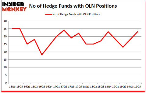 Olin Corporation (NYSE:OLN) was in 33 hedge funds’ portfolios at the end of the fourth quarter of 2019. OLN investors should pay attention to an increase in support from the world’s most elite money managers of late. There were 28 hedge funds in our database with OLN holdings at the end of the previous quarter. Our calculations also showed that OLN isn’t among the 30 most popular stocks among hedge funds (click for Q4 rankings and see the video at the end of this article for Q3 rankings).