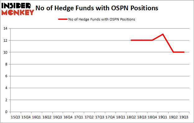 At Q3’s end, a total of 10 of the hedge funds tracked by Insider Monkey held long positions in this stock, a change of 0% from the second quarter of 2019. The graph below displays the number of hedge funds with bullish position in OSPN over the last 17 quarters. So, let’s check out which hedge funds were among the top holders of the stock and which hedge funds were making big moves.