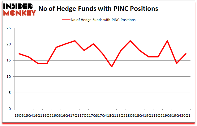 Heading into the second quarter of 2020, a total of 17 of the hedge funds tracked by Insider Monkey were long this stock, a change of 21% from one quarter earlier. Below, you can check out the change in hedge fund sentiment towards PINC over the last 18 quarters. So, let’s examine which hedge funds were among the top holders of the stock and which hedge funds were making big moves.