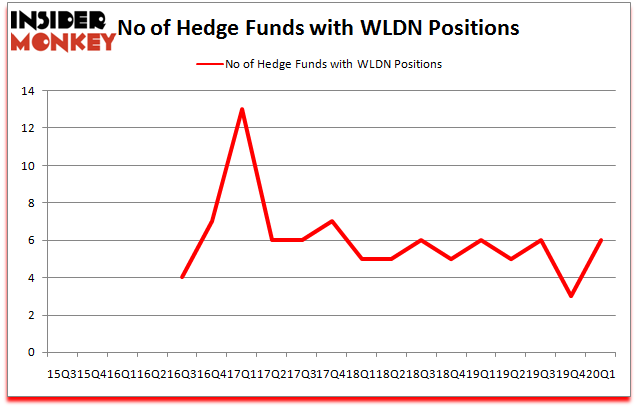 At Q1’s end, a total of 6 of the hedge funds tracked by Insider Monkey were bullish on this stock, a change of 100% from one quarter earlier. The graph below displays the number of hedge funds with bullish position in WLDN over the last 18 quarters. With hedge funds’ capital changing hands, there exists an “upper tier” of key hedge fund managers who were boosting their holdings substantially (or already accumulated large positions).