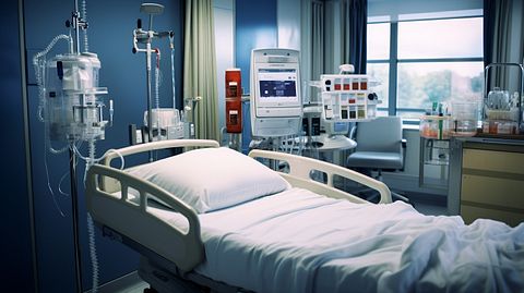 A hospital room with a patient using a medical device to administer insulin.