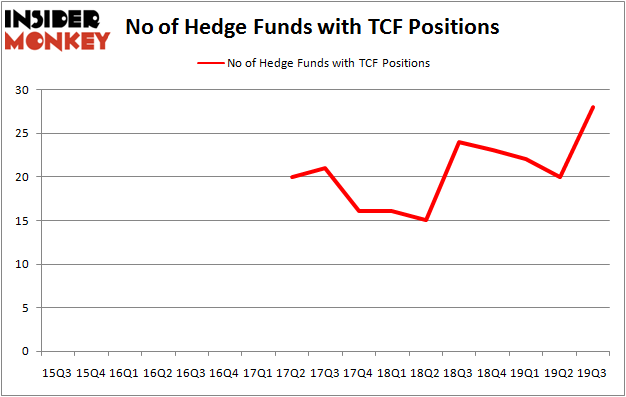 TCF Financial Corporation (NASDAQ:TCF) was in 28 hedge funds’ portfolios at the end of September. TCF shareholders have witnessed an increase in enthusiasm from smart money recently. There were 20 hedge funds in our database with TCF positions at the end of the previous quarter. Our calculations also showed that TCF isn’t among the 30 most popular stocks among hedge funds (click for Q3 rankings and see the video at the end of this article for Q2 rankings).