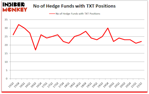 Textron Inc. (NYSE:TXT) investors should pay attention to an increase in enthusiasm from smart money lately. Textron Inc. (NYSE:TXT) was in 22 hedge funds’ portfolios at the end of the second quarter of 2021. The all time high for this statistic is 32. Our calculations also showed that TXT isn’t among the 30 most popular stocks among hedge funds (click for Q2 rankings).