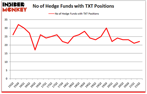 Textron Inc. (NYSE:TXT) investors should pay attention to an increase in enthusiasm from smart money lately. Textron Inc. (NYSE:TXT) was in 22 hedge funds’ portfolios at the end of the second quarter of 2021. The all time high for this statistic is 32. Our calculations also showed that TXT isn’t among the 30 most popular stocks among hedge funds (click for Q2 rankings).