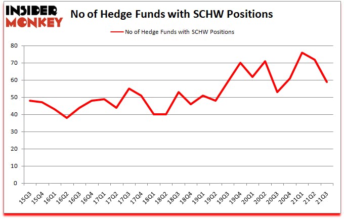 Is The Charles Schwab Corporation (NYSE:SCHW) an attractive investment today? Money managers were getting less bullish. The number of bullish hedge fund positions dropped by 13 lately. The Charles Schwab Corporation (NYSE:SCHW) was in 59 hedge funds’ portfolios at the end of the third quarter of 2021. The all time high for this statistic is 76. Our calculations also showed that SCHW isn’t among the 30 most popular stocks among hedge funds (click for Q3 rankings). There were 72 hedge funds in our database with SCHW holdings at the end of June.