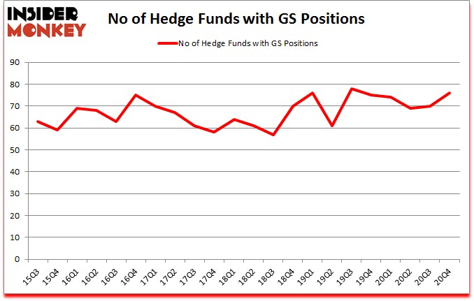 The Goldman Sachs Group, Inc. (NYSE:GS) has seen an increase in activity from the world’s largest hedge funds lately. The Goldman Sachs Group, Inc. (NYSE:GS) was in 76 hedge funds’ portfolios at the end of December. The all time high for this statistic is 78. Our calculations also showed that GS isn’t among the 30 most popular stocks among hedge funds (click for Q4 rankings).