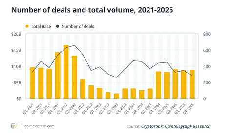 Venture funding in crypto reached a local peak in 2025, but still never came close to the records of 2021 and 2022. Source: Cointelegraph.