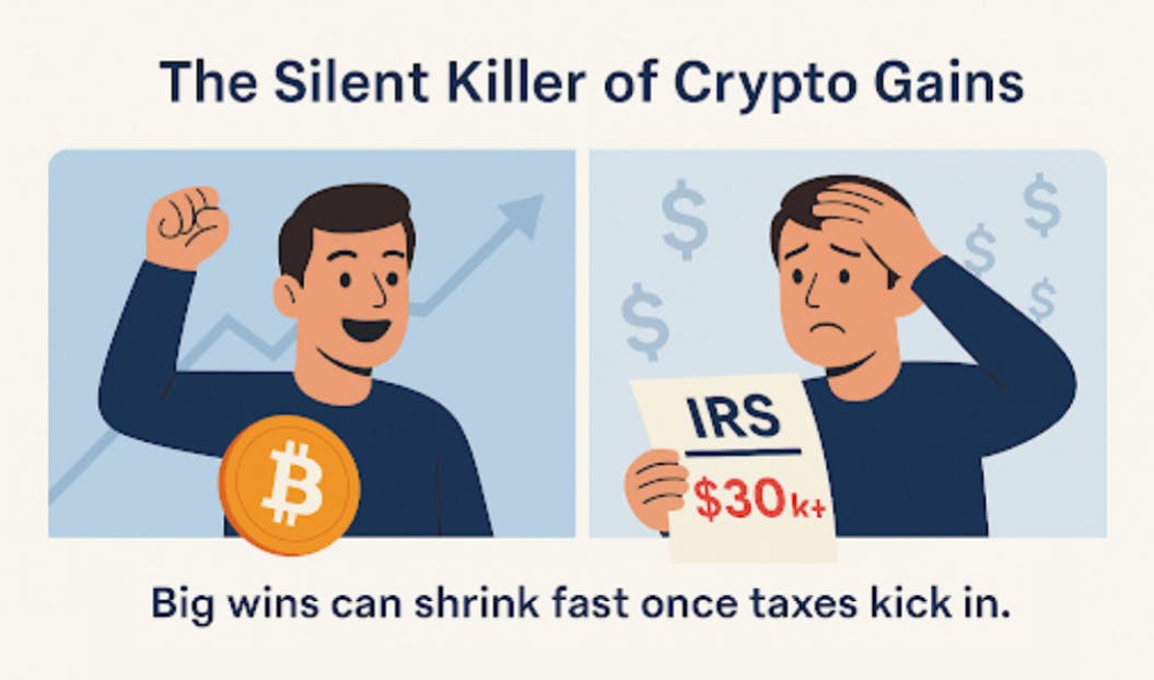 Now let’s revisit that Bitcoin example. If you turned $10,000 into $100,000 and sold it after less than a year, you could owe more than a third of your $90,000 profit in taxes. Even at long-term rates, that’s still a hefty check to the IRS. Multiply that across multiple trades or portfolio rebalances, and your big wins don’t look quite as big once Uncle Sam takes his share.