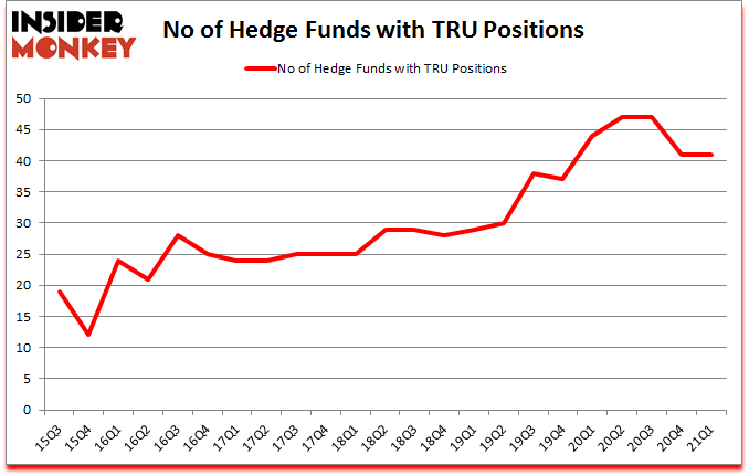 At the end of the first quarter, a total of 41 of the hedge funds tracked by Insider Monkey were long this stock, a change of 0% from one quarter earlier. The graph below displays the number of hedge funds with bullish position in TRU over the last 23 quarters. So, let’s check out which hedge funds were among the top holders of the stock and which hedge funds were making big moves.