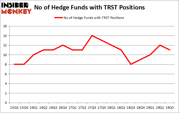 At the end of the third quarter, a total of 11 of the hedge funds tracked by Insider Monkey were bullish on this stock, a change of -8% from the previous quarter. On the other hand, there were a total of 8 hedge funds with a bullish position in TRST a year ago. With hedge funds’ capital changing hands, there exists a select group of notable hedge fund managers who were increasing their stakes considerably (or already accumulated large positions).